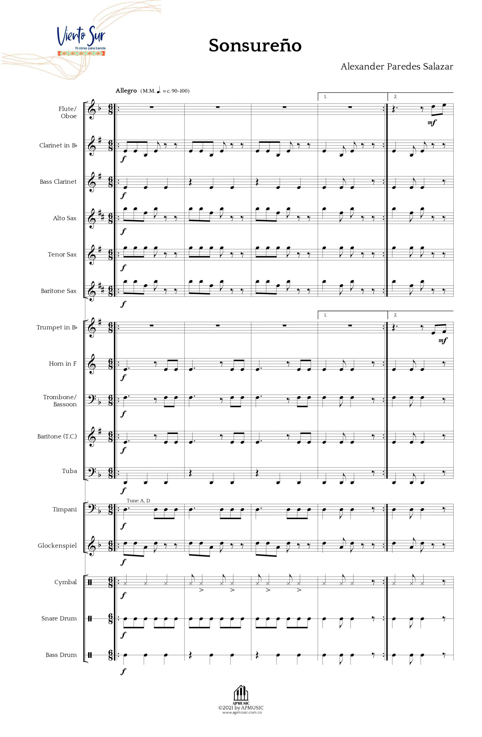 Obra de nivel fácil, aborda la lectura del 6/8, conserva la estructura melódico - armónica básica del sonsureño (género musical tradicional del sur de Colombia) dándole a cada sección instrumental su rol tradicional, no presenta nuevos retos en cuanto a la extensión del registro permitiendo profundizar en el trabajo de la lectura.